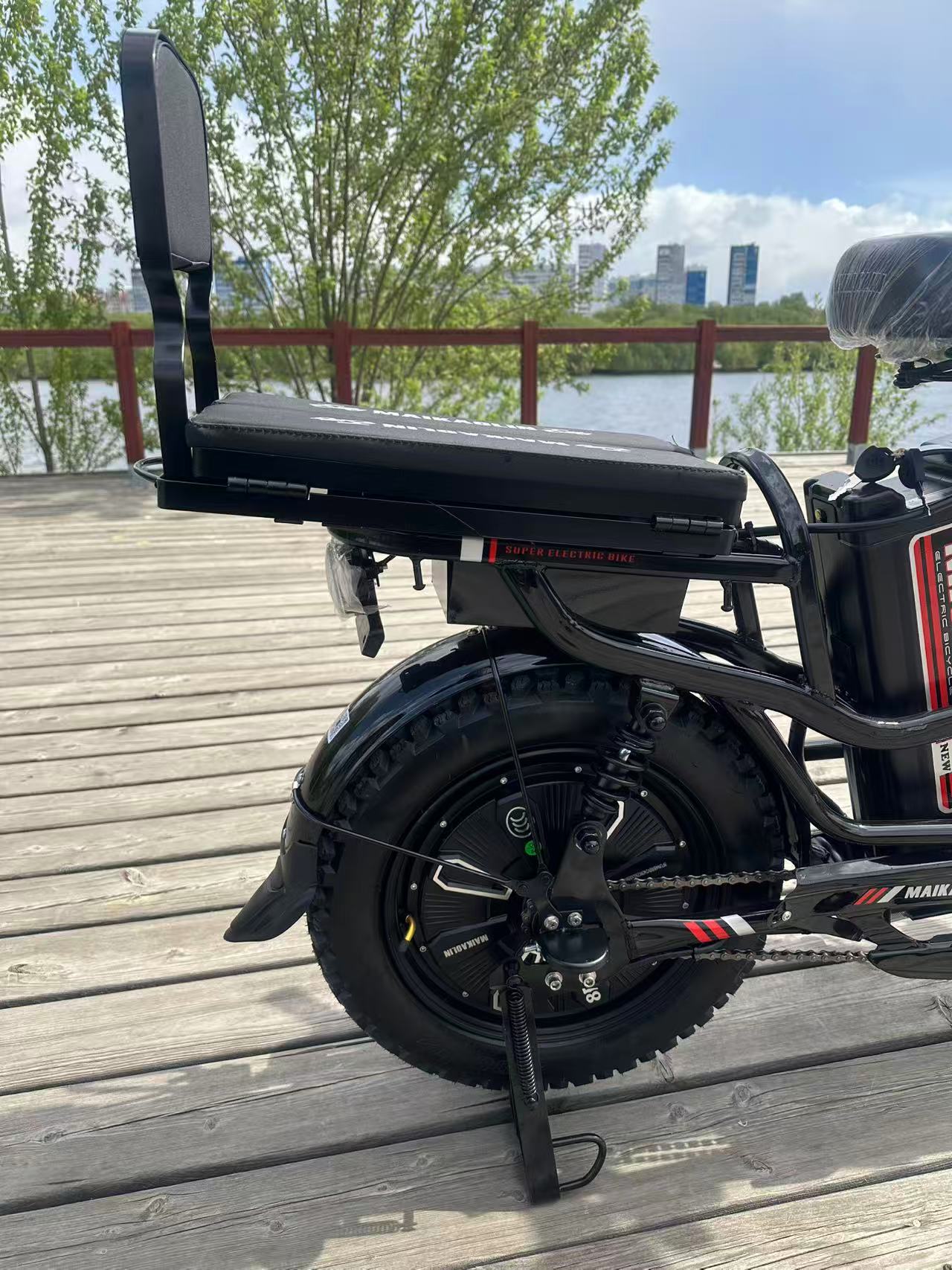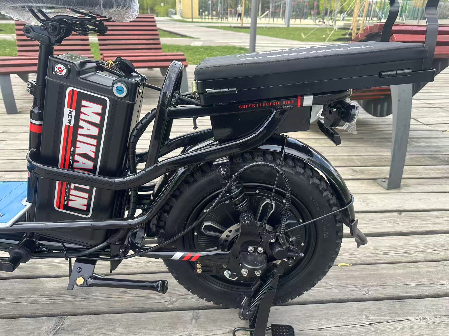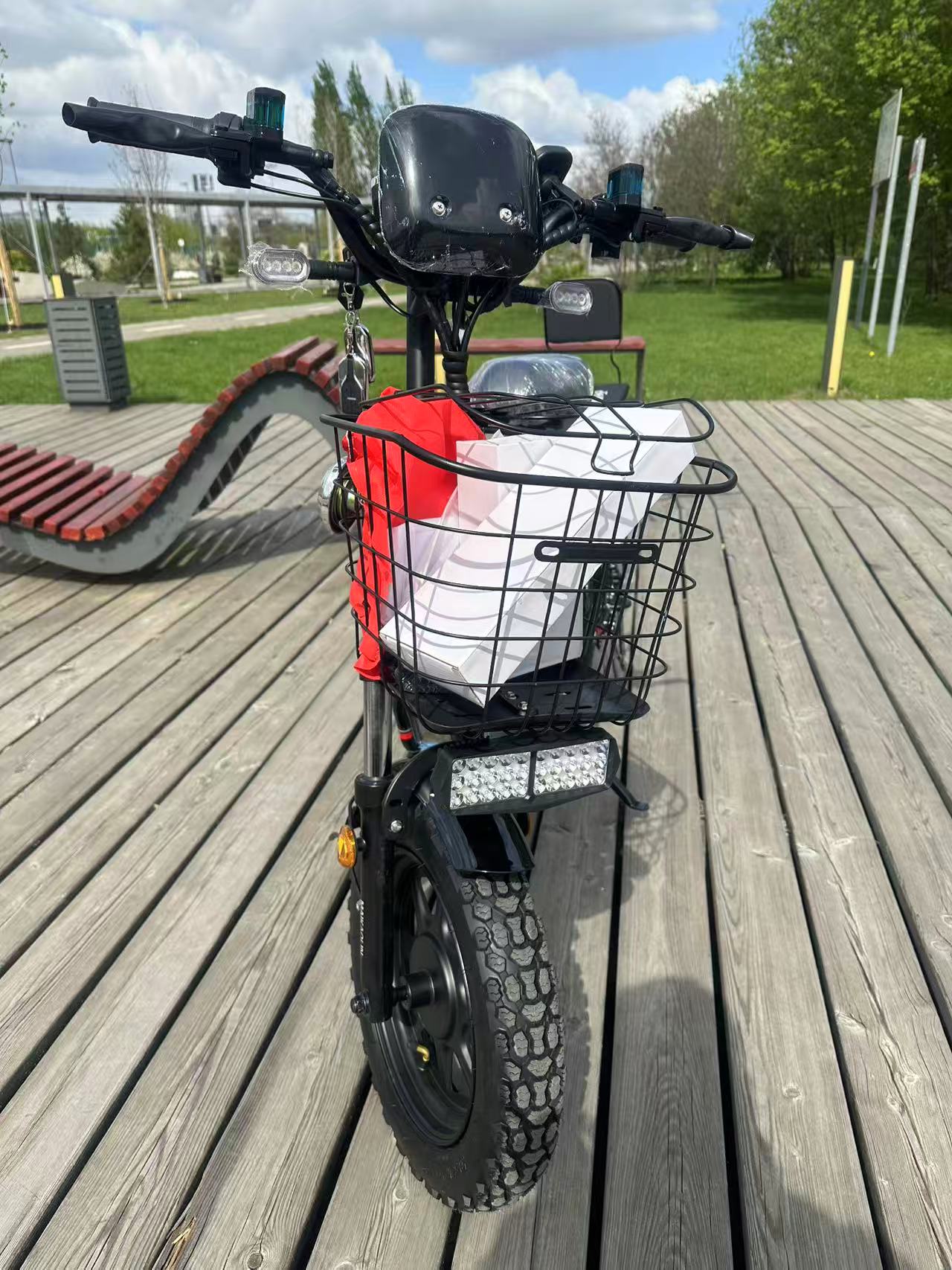 Рама: Железная Вес: 55 кг Мощность: 500W, по документам 240W Максимальная скорость: до 65км/ч Максимальная нагрузка: до 300 кг Пробег: до 50км Диаметр колёс: 16*3 дюймов Гидравлические задние и передние тормоза Контроллер надёжно спрятан, не нужно беспокоиться о его влагозащите 3 режима скорости Передняя фара Поворотники Сигнал Передняя корзина Дисплей с Bluetooth и встроенной колонкой Держатель телефона Зеркала заднего вида 2 пульта дистанционного управления Задний универсальный багажник Права не требуются